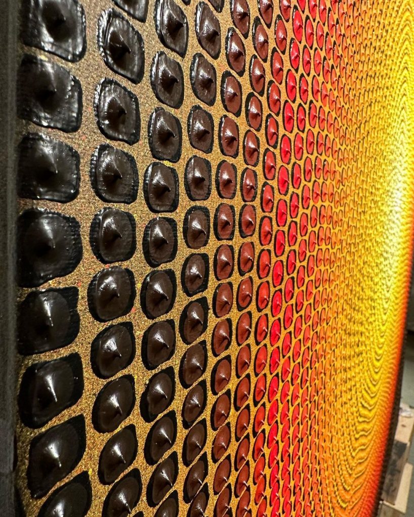 Den visuelle utforming til verkene fanger lyset, vibrasjoner og ikke minst farger, noe som skaper en følelse av en dragning mot verkene der detaljene vokser jo nærmere enn kommer.